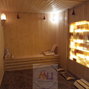 Phòng xông hơi khô gỗ thông sử dụng đất hoàng thổ – đất sét bi nhỏ kết hợp đá muối, giúp cơ thể đào thải độc tố, ngăn ngừa lão hóa, giảm đau nhức xương khớp, tốt cho hệ tuần hoàn, hô hấp, lưu thông máu, tăng cường hoạt động của não bộ, giúp ngủ ngon hơn.